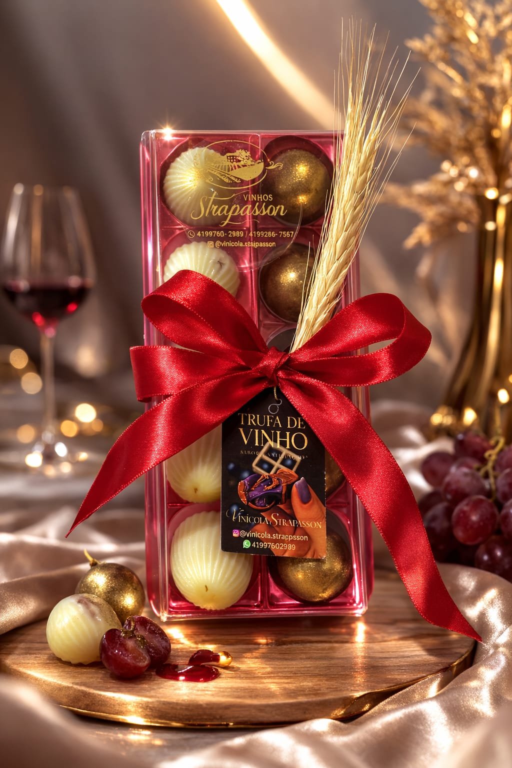 As trufas recheadas de vinho da Vinícola Strapasson são uma combinação perfeita entre a tradição da produção de vinhos e a delicadeza do chocolate artesanal. Cada trufa é preparada com chocolate de alta qualidade e um recheio cremoso com toque de vinho, proporcionando uma experiência sofisticada e marcante ao paladar. O contraste entre o sabor intenso do vinho e a suavidade do chocolate cria um equilíbrio único, ideal para quem aprecia doces refinados e cheios de personalidade.