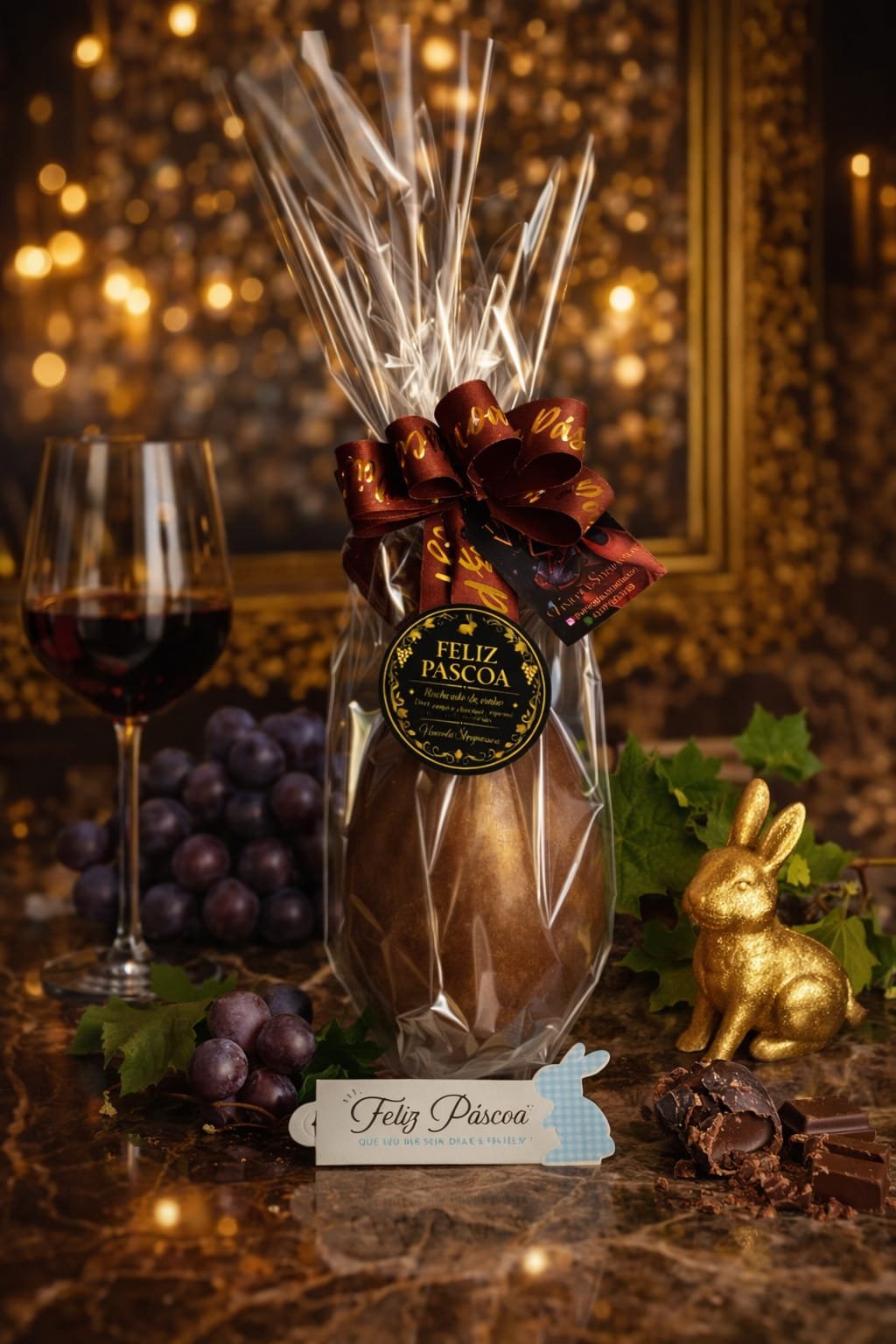 O Ovo de Páscoa da Vinícola Strapasson, com 300g, é uma verdadeira experiência de sabor e sofisticação. Produzido com chocolates de alta qualidade, ele está disponível nas versões chocolate preto, chocolate branco e meio a meio, permitindo que cada consumidor escolha ou combine os sabores de acordo com sua preferência. Cada detalhe é pensado para proporcionar uma experiência indulgente, desde a textura cremosa até o aroma marcante, refletindo a tradição e o cuidado da vinícola.